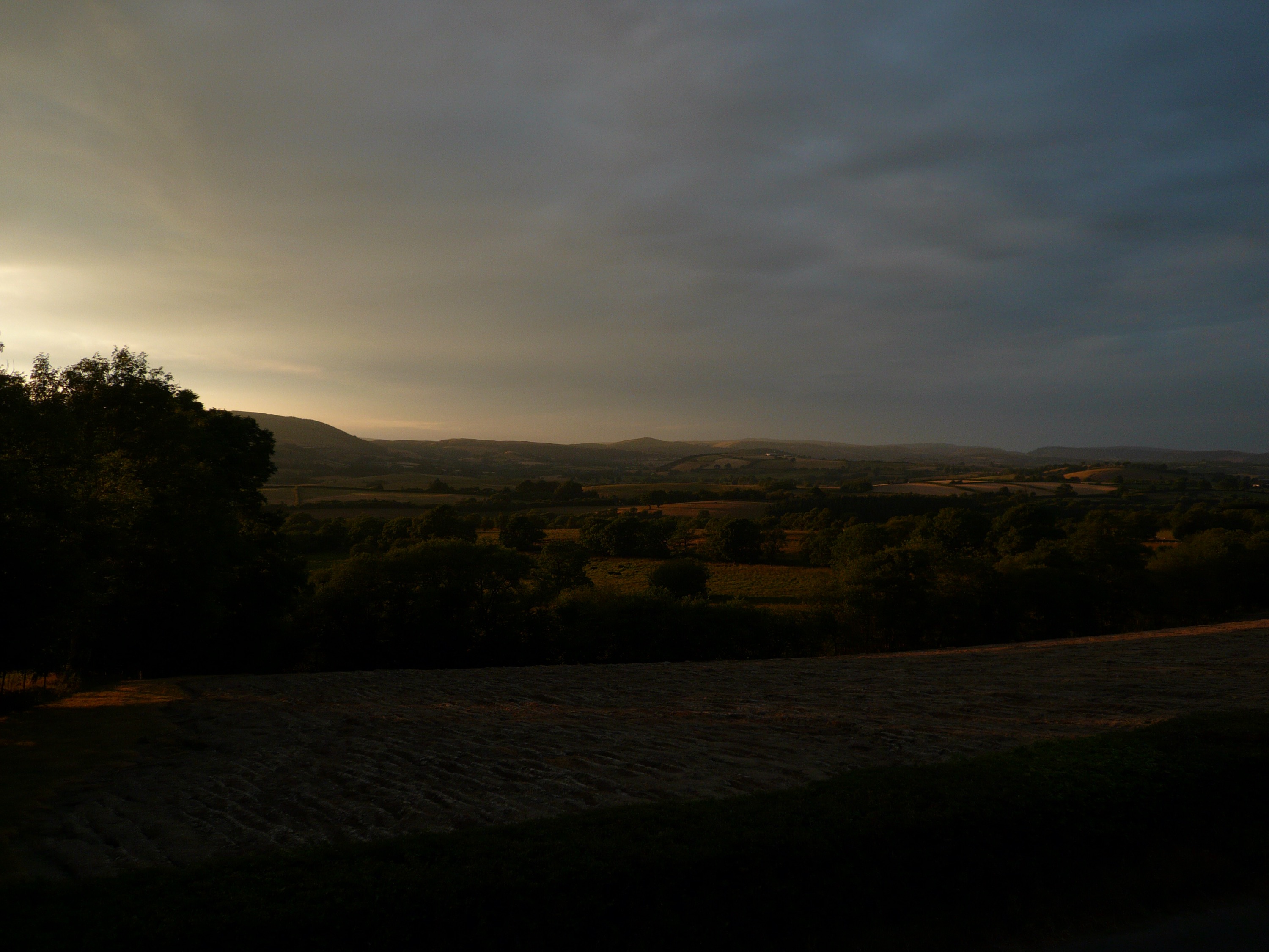 Small birds sweep low low in the winding lanes, pressed down by a weight of sunlight. They we they swim, we swim slow slow through slow air. A blazing sky cloudless rings slow and dark the slow small waters silent almost almost silent slipping by. They arc and dip and sway the golden grasses’ heavy heads golden purple green grey and the red tipped meadow where the hares hide on the high corner beyond the wood on the high winding road in bitter bright light.